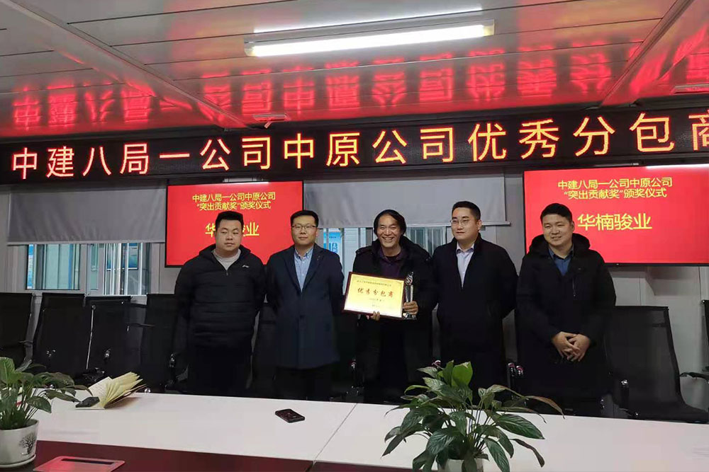 授獎儀式中,華楠駿業(yè)董事長柳總表示很榮幸獲得中建八局一公司中原公司授予的“優(yōu)秀分包商”的榮譽(yù)稱號,對我們?nèi)A楠駿業(yè)來說這不僅是一份榮譽(yù),更是中原公司對我們公司工作上的肯定。中建八局“優(yōu)秀分包商”這一獎項(xiàng)彌足珍貴。我們會倍加珍惜這個榮譽(yù),倍加珍視這個機(jī)遇,進(jìn)一步加強(qiáng)與中建八局一公司中原公司的合作,共同譜寫雙方更輝煌的明天!