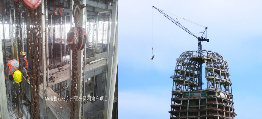 該項目由中建三局一公司華南公司歷時3年建設的琶洲高樓,東莞華楠駿業承接“天目廣場”頂模拆遷項目。“天目廣場”造型優美,冠頂的高度區間為280.5米—311米,總垂直高度30.5米,采用弧線型鋼管交錯焊接而成,并隨體型上升進行收分,在接近冠頂部分向中心彎曲靠攏,施工難度大,頂模拆除任務艱巨。公司為此項目專門設計、制造液壓頂模系統,根據所需頂升樓盤環境因地制宜的選擇不同方式,可選擇頂模系統或者爬模系統,很好的完成這次頂模拆除項目。