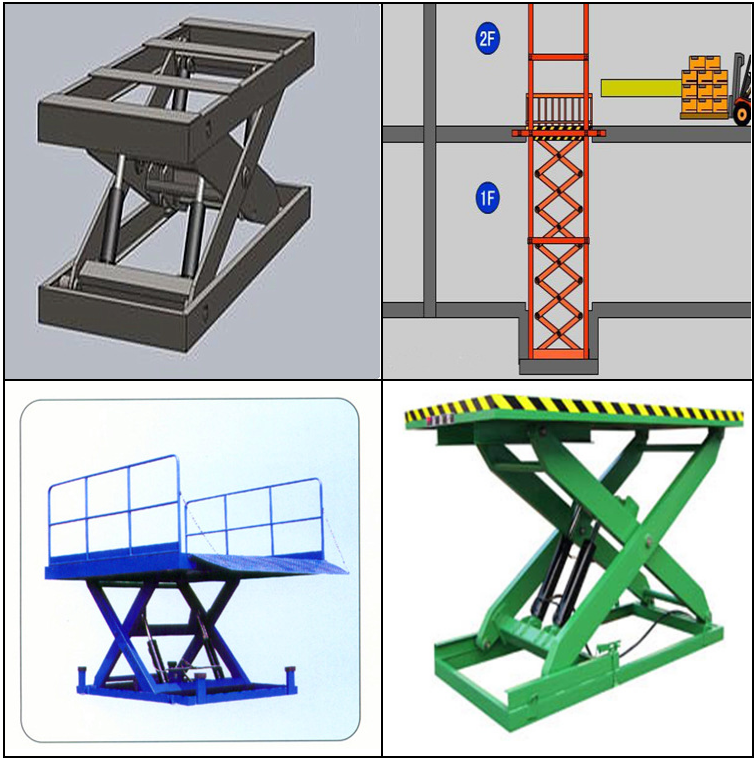 平臺部分 | 有封閉式(即轎廂式)或敞開式,兩側裝有導向輪或導靴,平臺底部連接升降油缸或連接升降剪叉型鋼架 |